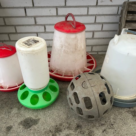 Indsatser foder og vand, 20 kr stk. nipler til vand 10 kr kan evt. sendes. ellers hentes i Hammel