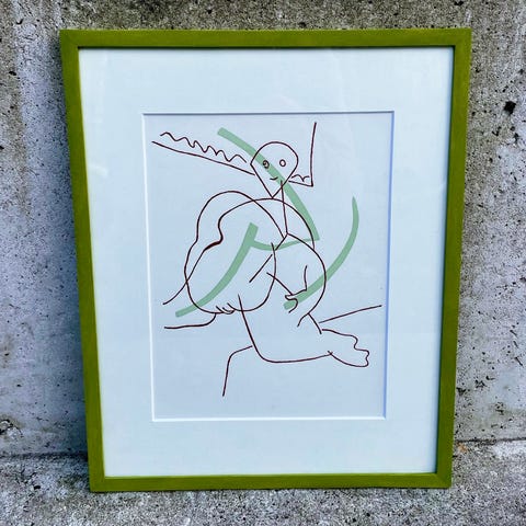 Flot litografi fra 1977 i lyserøde, lyseblå og gule nuancer. Billedet er i original indramning. Kan desværre ikke sendes.