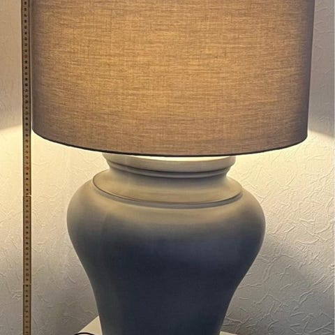 Grå lampeskærm til stander- eller bordlampe. Hvid inderside.