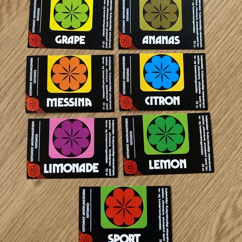 4 tyske mineralvandsetiketter fra ca. 1960