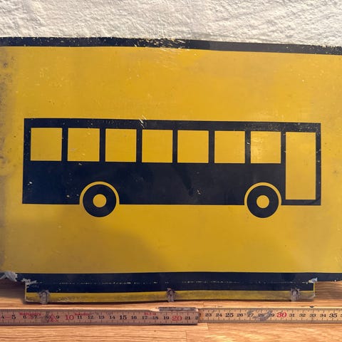 Skilte, Skilt med busstop, Fin gammel busstop skilt med graffiti.
