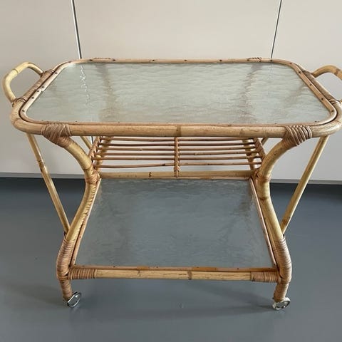 Havebord, Bambus bord , Bambus og glas, Pink bambus bord med glasplade
