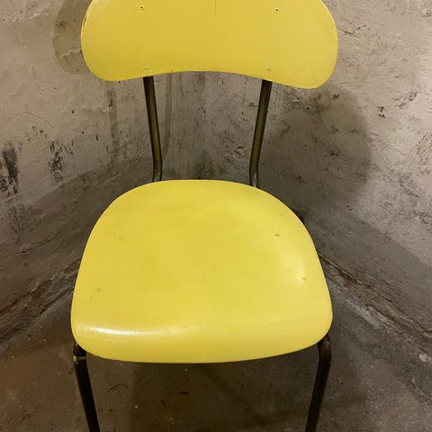 Står flot med Patina man kan forvente efter mange år i verden. Siddekomfort er virkelig god og har stået flot i mit køkken, men skal nu videre!