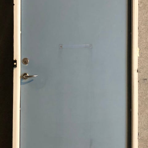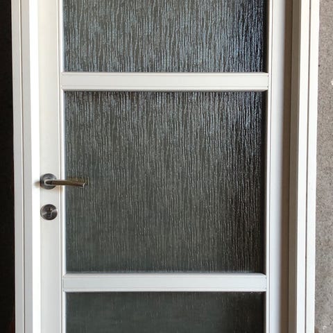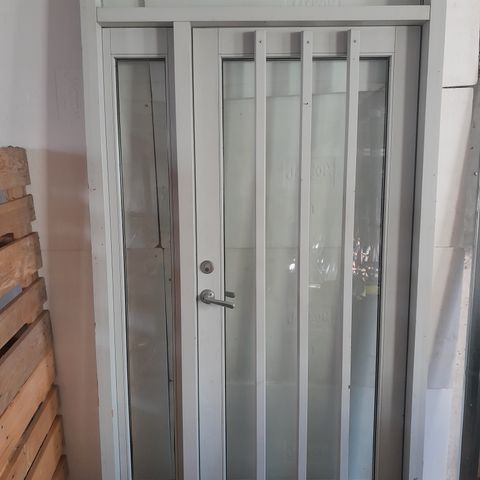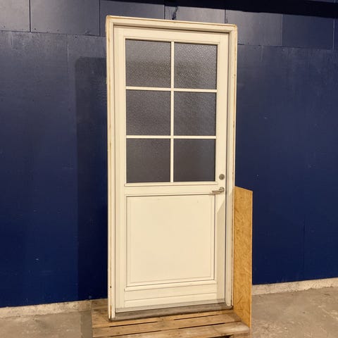 Brugt Yderdør, matteret, døren har en mindre skade på indersiden, kan ses på billedet, nøgle medfølger ikke Varenummer: 734