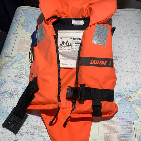 Jeg har også en redningsvest fra Helly Hansen 50 - 60 kg som sælges for 100 kr.