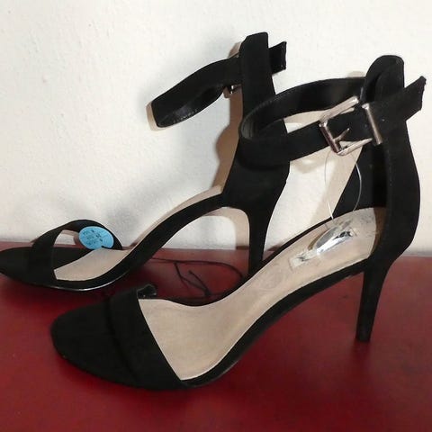 Stiletter, str. 39, Unida, Sort, Ruskind, Næsten som ny, Unisa slingback med åben tå, 8 cm høj hæl med forfodsplateau. Brugt 2 gange, meget behagelig pasform. Ingen slidmærker i ruskindet. Nypris 699,- kr