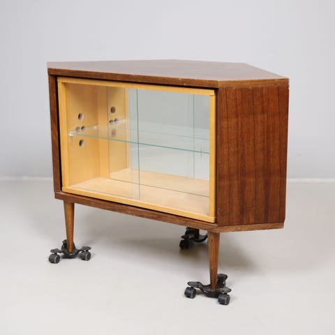 Barskab fra 50’erne. Kæde, der holder midterlågen oppe skal fæstnes. Skåret et lille hold bag på skabet til ledninger.