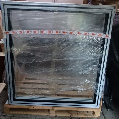 Topstyret vindue 239 x 118 cm Træ alu, lysegrå udvendig/ hvid indvendig