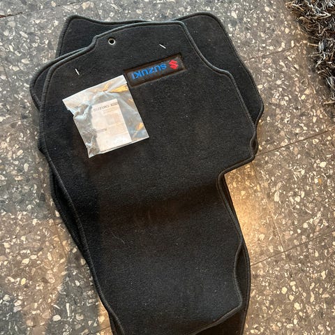 Brugte gulvmåtter til Suzuki Baleno modelår 2016 og frem. Der er kun tre; den ved førersædet mangler.