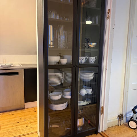 Har bitte små Skruehuller da det har været skruet sammen med øvrige skabe til salg med eget opslag.