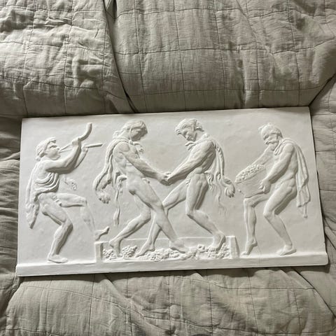 6 Vægrelief, gips, 19. århundrede, Eneret HC Brix, Jesu bjergprædiken, 60x22(uden ramme)