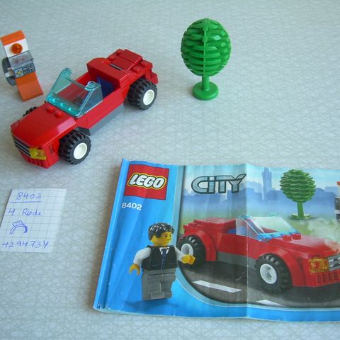 Lego 8402 Fin lille brugt bil med mand, træ og telefonbox
