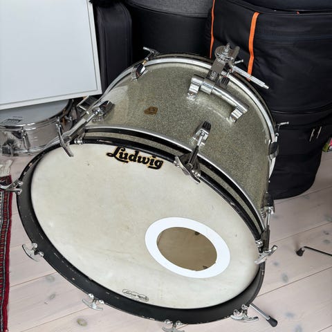 Et fantastisk og super velholdt / MINT Vintage Ludwig trommesæt i Champagne Sparkle fra 11 May 1966.