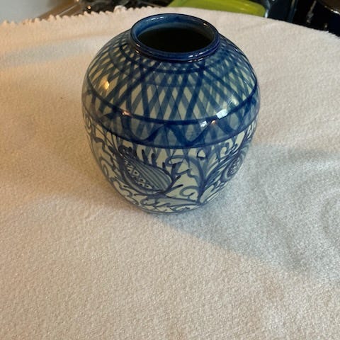 Dansk keramik, den sidste rest af det oprindelige klistermærket med markering af "Dansk keramik" sidder stadig på.