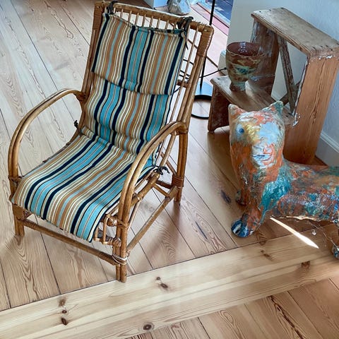 Retro kurvestol i pileflet til barn, ryghøjde 51 cm, kun lidt brugt og er som ny, sælges.