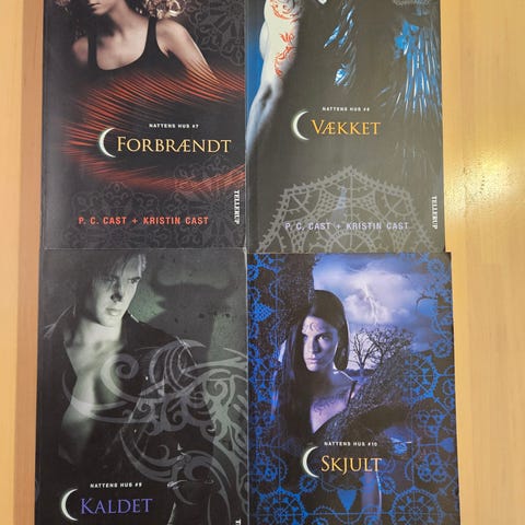 P.C. Cast + Kristin Cast House of Night Bogserie indeholder fire bøger. Serien inkluderer 'Vampyrens Mærke', 'Forrådt', 'Udvalgt' og 'Udstødt'. Bøgerne er i paperback-format og er velegnede til fans af fantasy og ungdomsromaner.