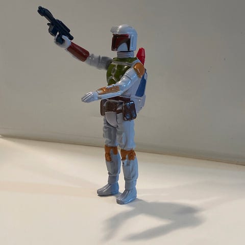 Original 3.75” Boba Fett actionfigur fra Kenner (C.P.G. 1979), komplet med original blågrå blaster.