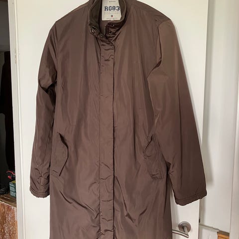 Vinterfrakke størrelse M eller 40. 63% polyester. 35% uld og 2% elastane.