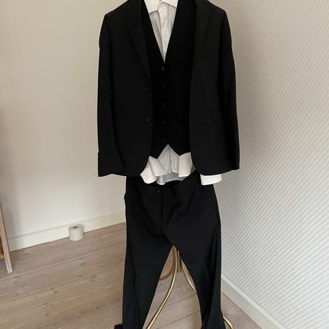 Jardorf Brothers red label jakkesæt, sort (med mørkegrå tern), 100% uld. Kun brugt én gang.