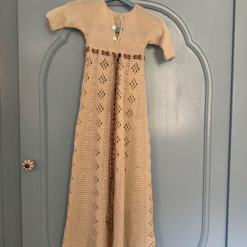 Fin dåbskjole med tilhørende dåbs kyse,og lille vest i samme stof som kysen