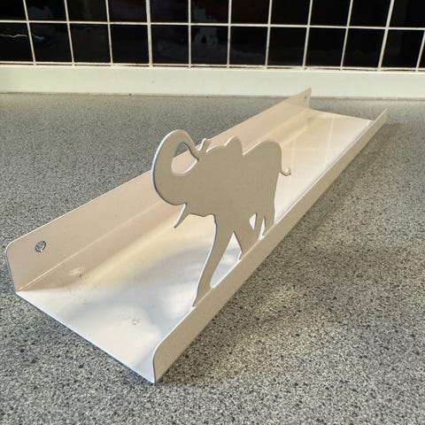 Sælger denne fine hylde, hvor man kan hænge tøj på.