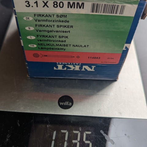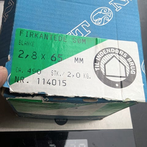 Pakke er anbrut og der er brugt ca 50 gram søm, så der er ikke helt ca 2000 stk søm i pakke