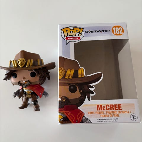 Overwatch Reaper. Funko Pop 493. Det er en særlig Reaper. Kassen er med, men der er ikke gemt plastikken inde i kassen.