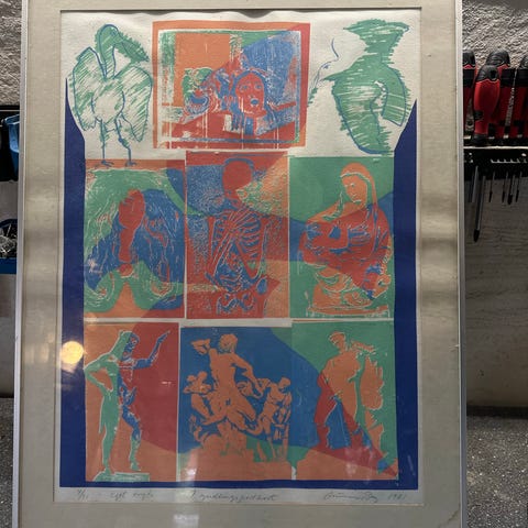 Tryk, Gunnar Moos, b: 57 h: 57, Signeret tryk i blå passepartout og aluramme.
