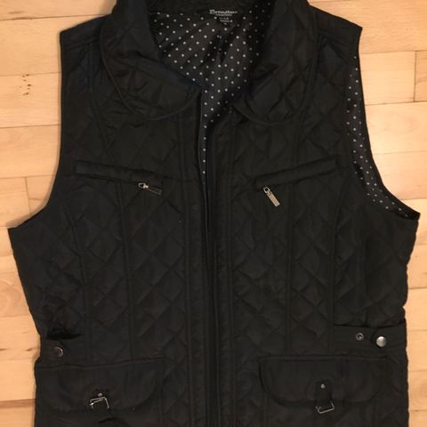 Fin og hel flot damevest, med 4 lynlås lommer foran, er af mærket Stinna Fashion str. L/XL den er i nylon og kan vaskes i maskine på 30gr.