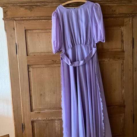 Hellang kjole. Silke inderst med flere lag tyl og bærestykke med perler. Brugt `en gang til Les Lanciers på min datters gymnasium. Købspris 1900,- kr, hos La Princessa, Aarhus. (kan afkortes)