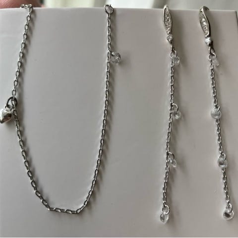 Blomster Smykkesæt i sølvbelagt porcelæn. Designet til kvinder. Sættet inkluderer et rosen vædhæng til kæde og et matchende sæt øreklips. Der findes kun dette ene sæt. Ideelt til både hverdag og særlige lejligheder.