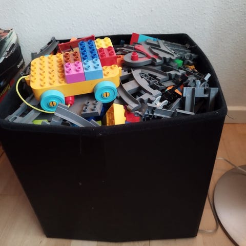 Vi sælger en stor mængde Duplo med forskellige elementer, bl.a. også en tovbane med elektrisk tog.