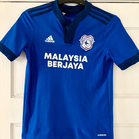 Blå, modig og med stolte walisiske rødder – denne Cardiff City-trøje fra 2018/19-sæsonen emmer af både Premier League-drømme og passioneret opbakning. Et klassisk Adidas-design med moderne pixelmønster og klubbens ikoniske blåfugl på brystet.