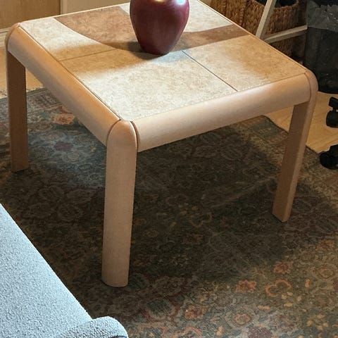 Det store sofabord har flotte kakler, der skaber varme og hygge, men ikke mindst har det en stor skuffe i den ene ende, hvor der er masser af plads til alle fjernbetjeninger, mobiler, løse mønter og hvad der ellers kan blive væk i sofaen!