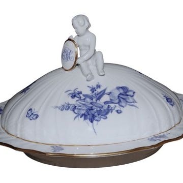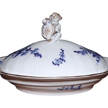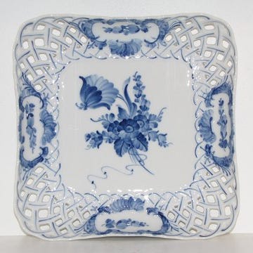 Royal Copenhagen Blå Blomst, sjælden, firkantet salatskål med høj kant.