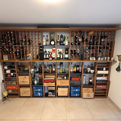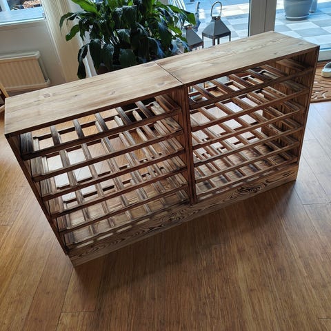Vinreol, b: 145 d: 45 h: 200, Lækker hjemmebar i massivt mahogni med indbygget fadølsanlæg med 3 udtag.