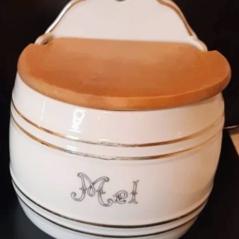 Fajance, SMØRKRUKKE, Hyggelig og rigtig gammel smørkrukke med "ører".