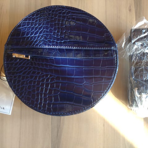 Flot petroliumsblå skuldertaske i læder. Aldrig brugt.