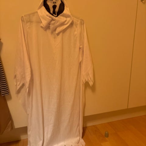 Udklædningstøj, Spøgelsesdragt, Hætten har spøgelsesansigt både foran og bagpå. De er selvlysende i mørke.
