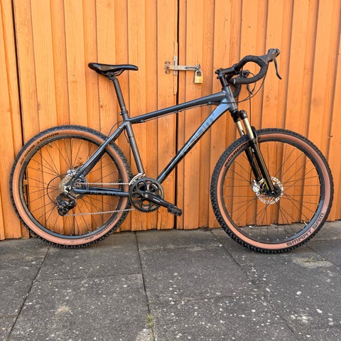 Lækker cross/grus/MTB cykel, der stort set aldrig har været brugt. Stået indendørs og tørt, så ingen rust. Har 24 speed Shimano Altus geargruppe, hydrauliske skivebremser, lygter, affjedring i forgaffel og medfølgende skærme. Er også ideel til hverdagskørsel - meget behagelig at køre på pga. affjedringen.