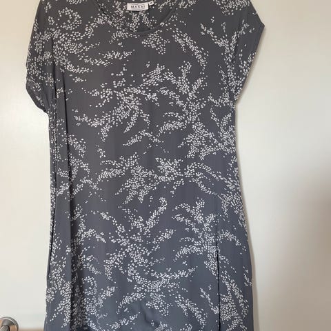 Fin og velholdt Masai tunika i petroleumsfarvet med sorte bladlignende mønstre. Størrelse M. 3/4 ærme. Klædelig model. Bådformet hals med en lille lynlåseffekt. Se også gerne mine øvrige annoncer under Min profil. Jeg har et par andre "tøjting" og meget andet, bl.a. bøger. Jeg sender gerne og hurtigt. Jeg sender med almindelig postforsendelse.