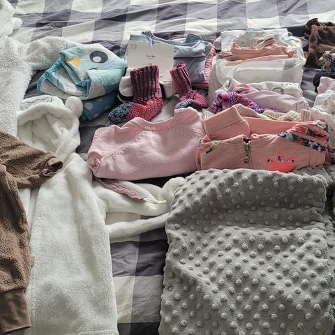 En stor bunke babytøj og sutter