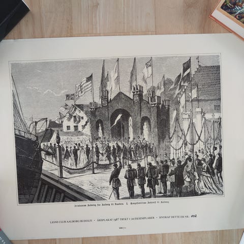 Års plakat fra Lions Club Aalborg 1988. Motiv på denne Helligaandens-hus. Kun trykt i 200 eksemplarer. Kraftig papir. Pæn stand. 4 stk haves med dette motiv, henholdsvis nr 46, 59, 79, 93.