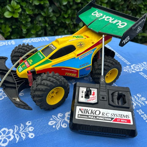 Fjernstyret Jeep i størrelse 1:10. Kører fint, og er i rigtig pæn stand. Eneste mangel er knoppen på antennen til controlleren.