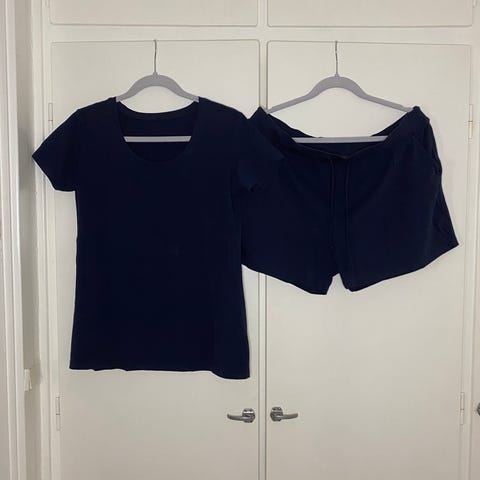 Andet, T-shirt og shorts, Andet, str. Medium, Sort m. blonder, Ubrugt, Sommersæt i sort, bestående af t-shirt og shorts m. blonder i str. medium.