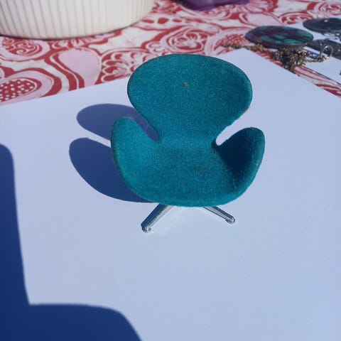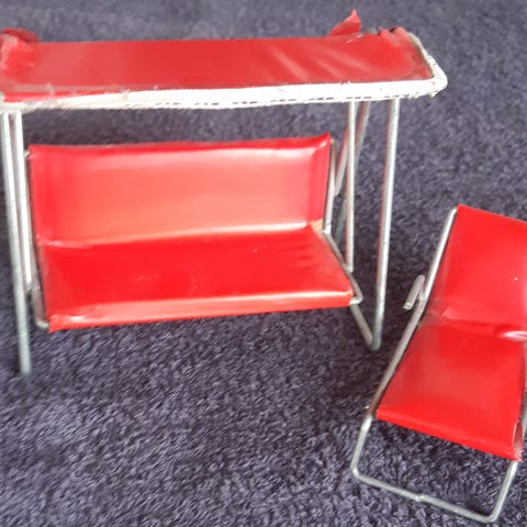 Vintage dukkehusmøbler i turkis. Sender gerne