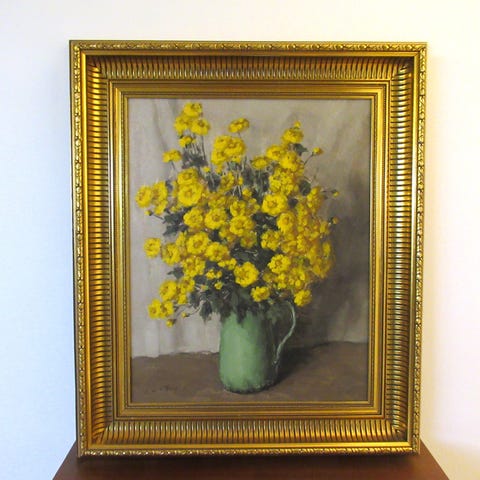 Reproduktion, W. Schølei, motiv: Vase med solsikker, b: 47 h: 58, Billede på masonitplade. Signeret W. Schølei 1956.