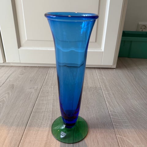 Vase, Glasvase, Örrefors, Utrolig smuk retro vase med blå fod fra Örrefors - H: 23,0 cm - Ø- Top: 16,0 cm - Pris: kr. 450.-