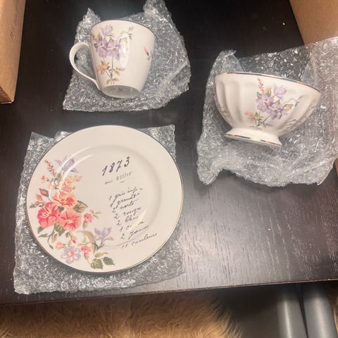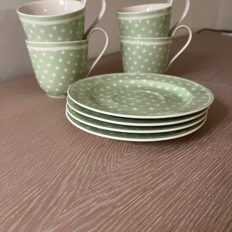 Dette fine porcelæn kaffesæt er aldrig blevet brugt- består af 8 dele 4 personer..mærke Greengate