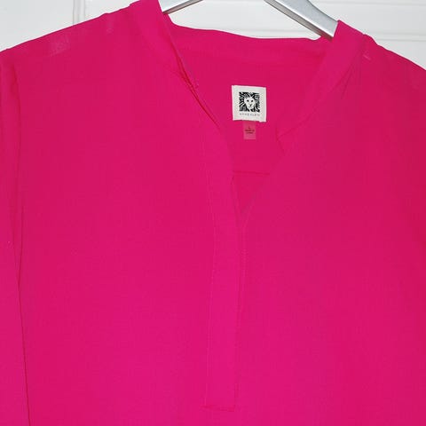 Top, Anne Klein, str. 36, Hvid, beige og sort, Polyester, Næsten som ny, Fin Anne Klein mønstret ærmeløs top i farverne hvid, beige og sort - størrelse S - sælges som næsten ny.